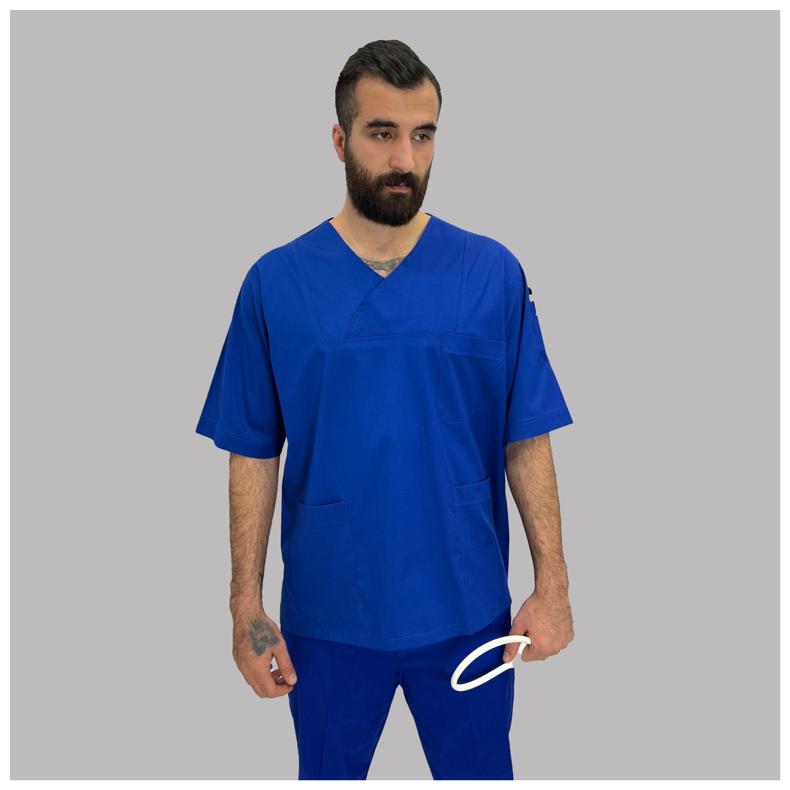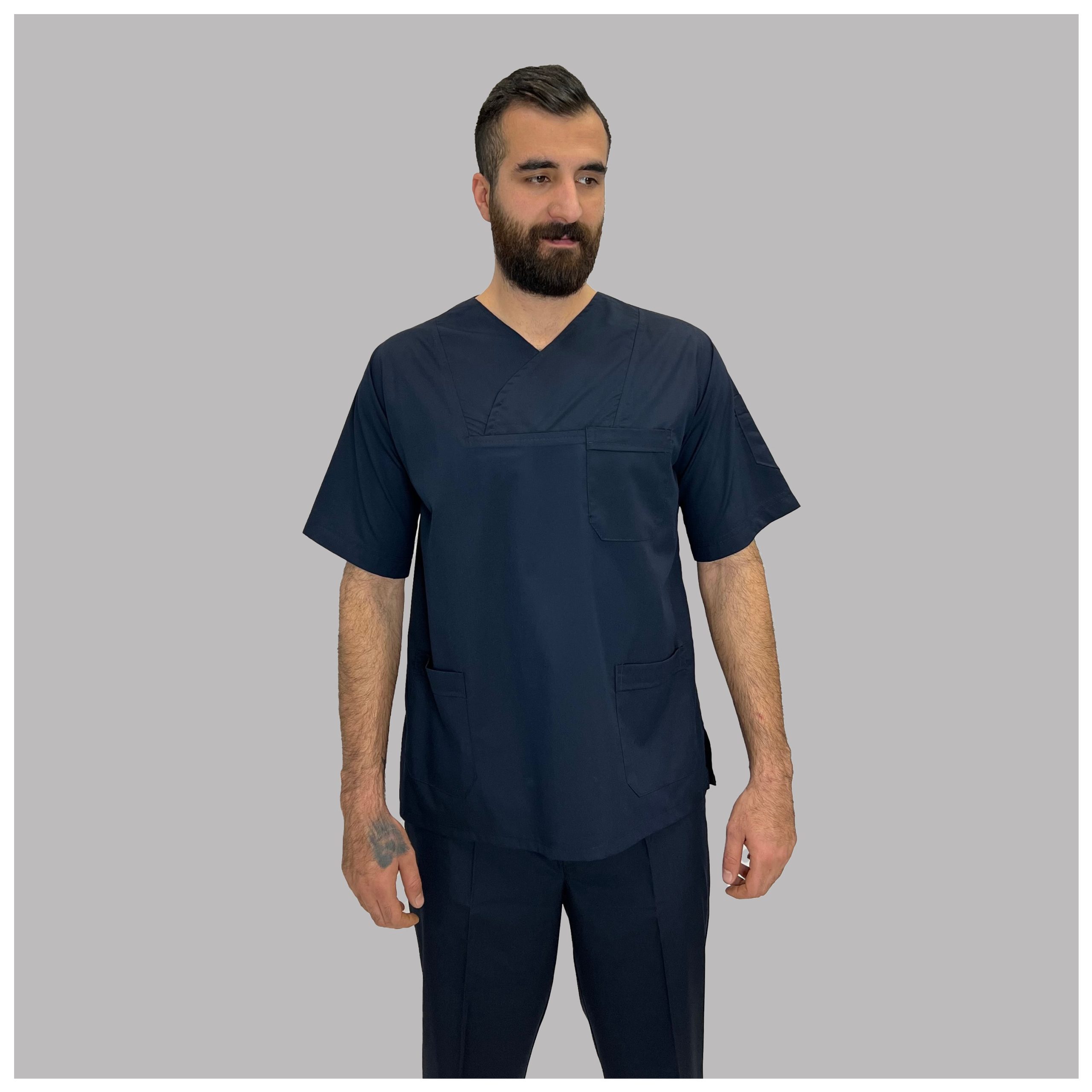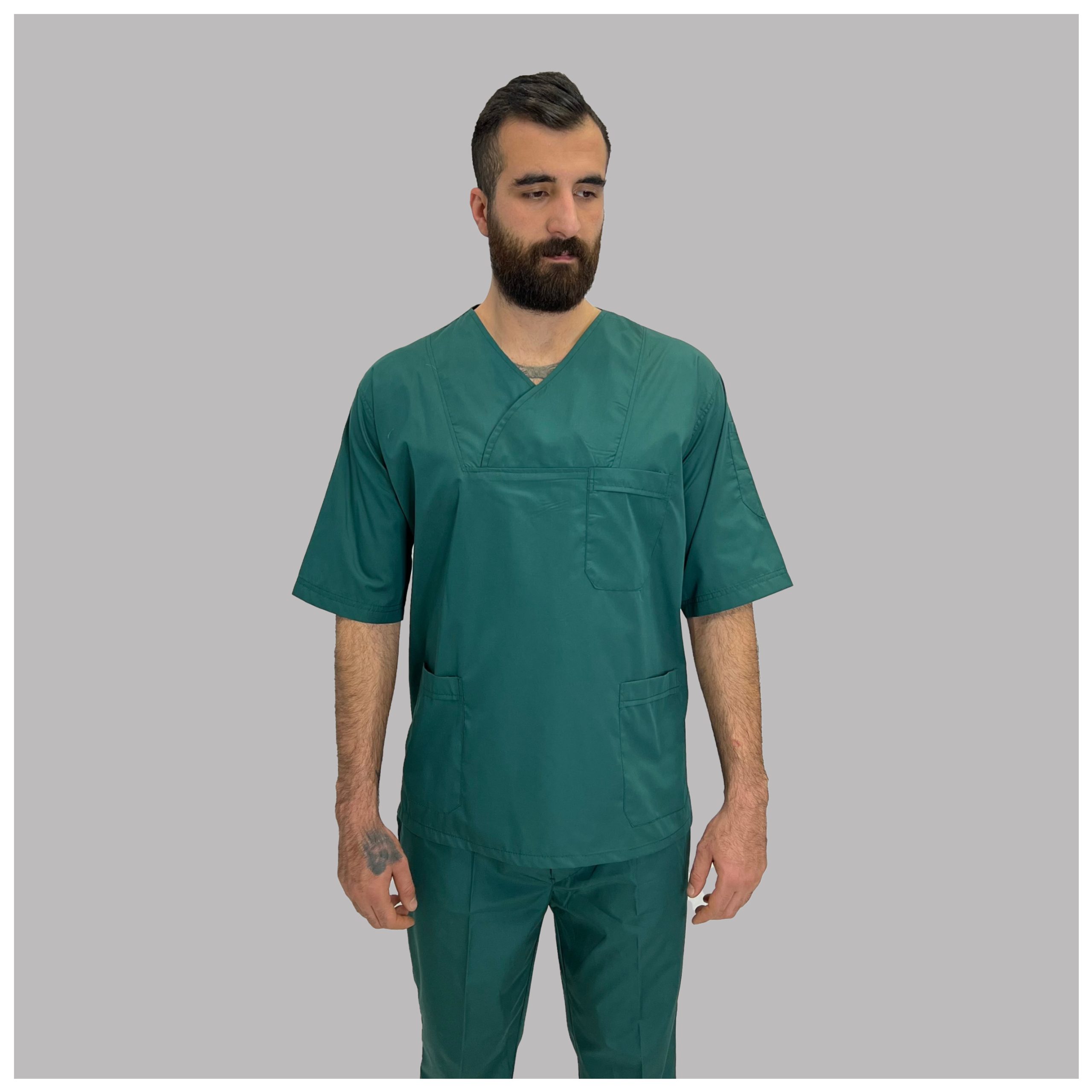 ست اسکراب مردانه يقه چپ و راست بروجرد، انتخابي حرفهاي روزمره براي پزشکان، پرستاران، دندانپزشکان، و پرسنل اتاق عمل. اين محصول از پارچه ترگال ساده بافت بروجرد تهيه شده که بعنوان بهترين پارچه توليد داخلي شناخته ميشود.